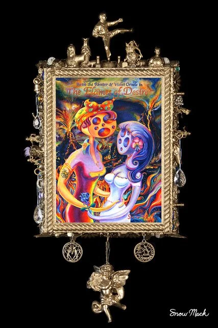 Snow Mack is a contemporary visual artist known for her vibrant, dream-inspired paintings and symbolic assemblage frames. Her work blends pop culture, mythology, and surreal imagery to explore the subconscious, resulting in visually rich narratives that are both personal and archetypal. Snow Mack lives and works in Los Angeles, where she continues to develop a body of work that merges vivid imagination, cultural commentary, and a deep symbolic vision. snowmack.com
